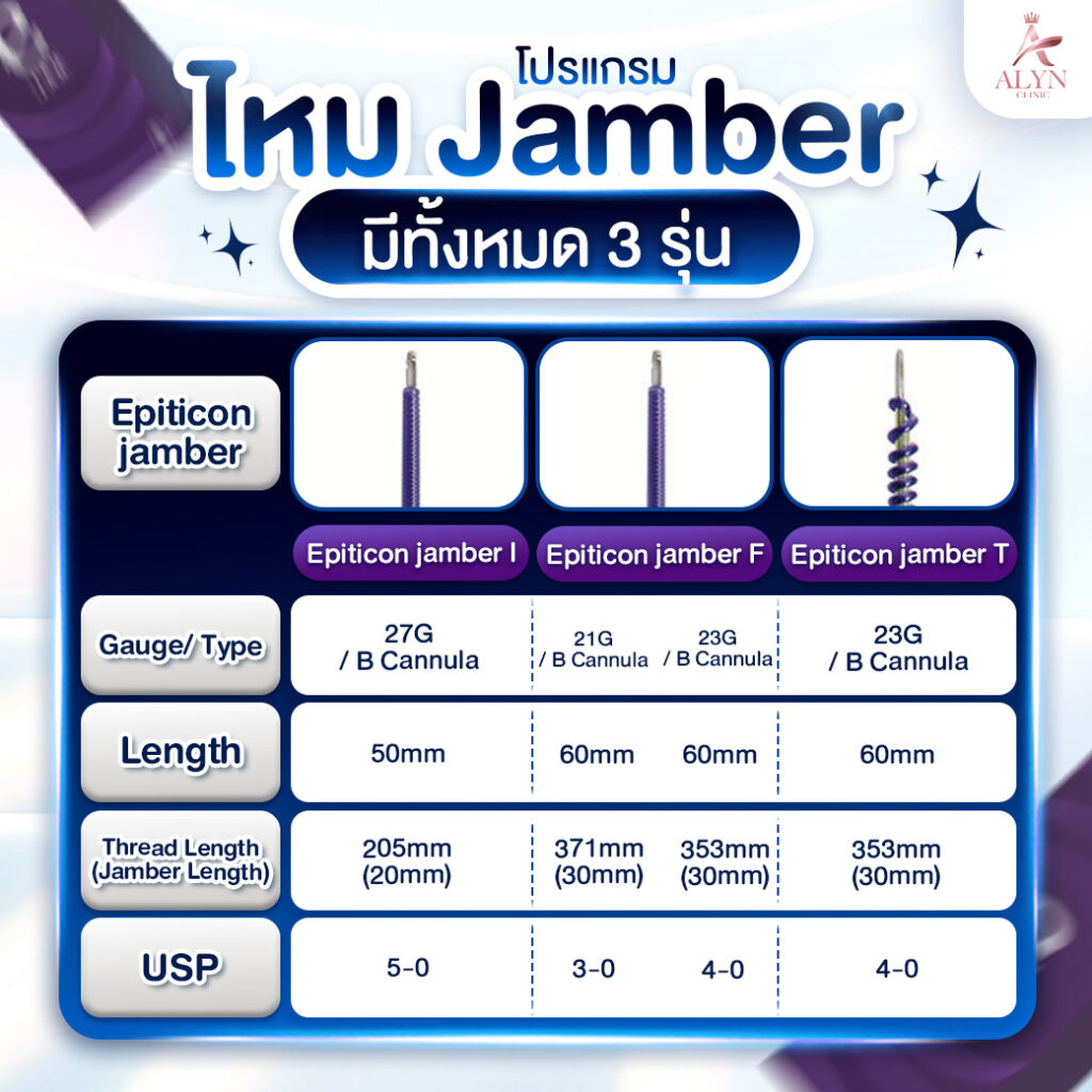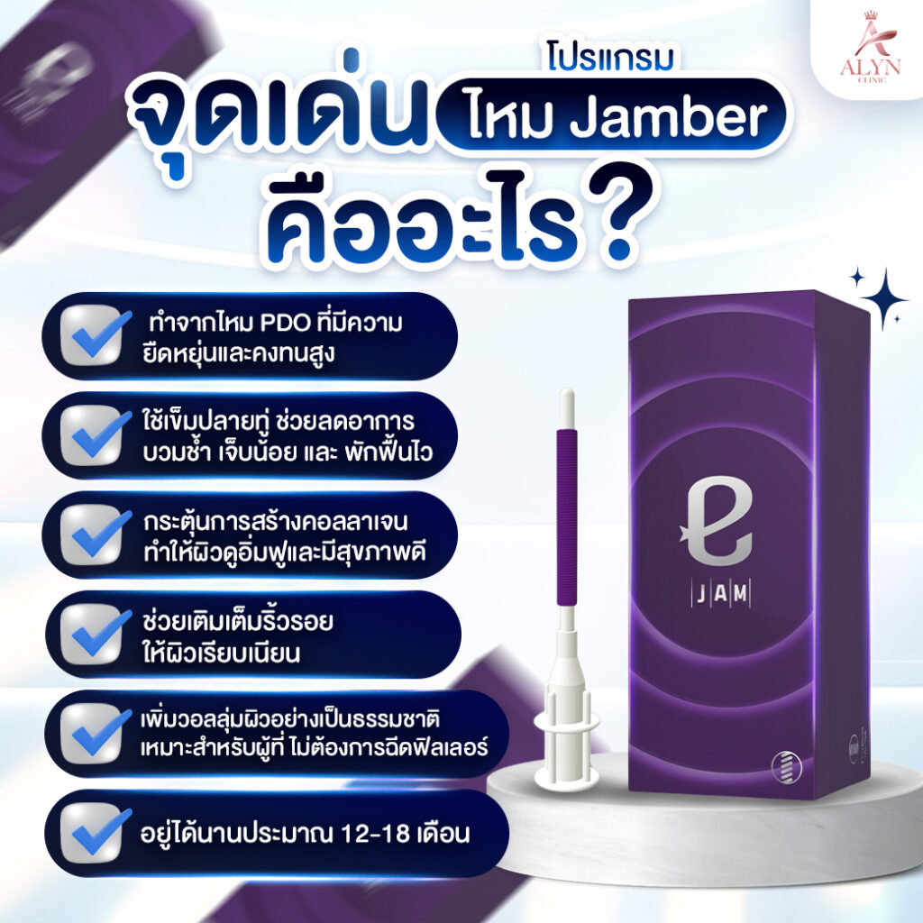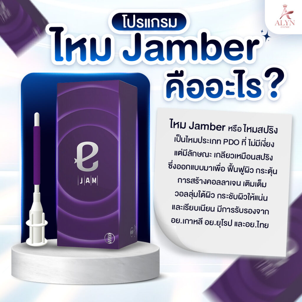 ไหม Jamber หรือที่รู้จักกันในชื่อ “ ไหมสปริง ” คือไหม PDO แบบไม่มีเงี่ยง (Non-barbed PDO Thread) ที่ถูกออกแบบมาในรูปแบบเกลียวคล้ายสปริง เพื่อช่วยในการฟื้นฟูผิวอย่างมีประสิทธิภาพ โดยกระตุ้นการสร้างคอลลาเจนใต้ผิว เติมเต็มวอลลุ่ม และช่วยให้ผิวดูกระชับ เรียบเนียนอย่างเป็นธรรมชาติ
