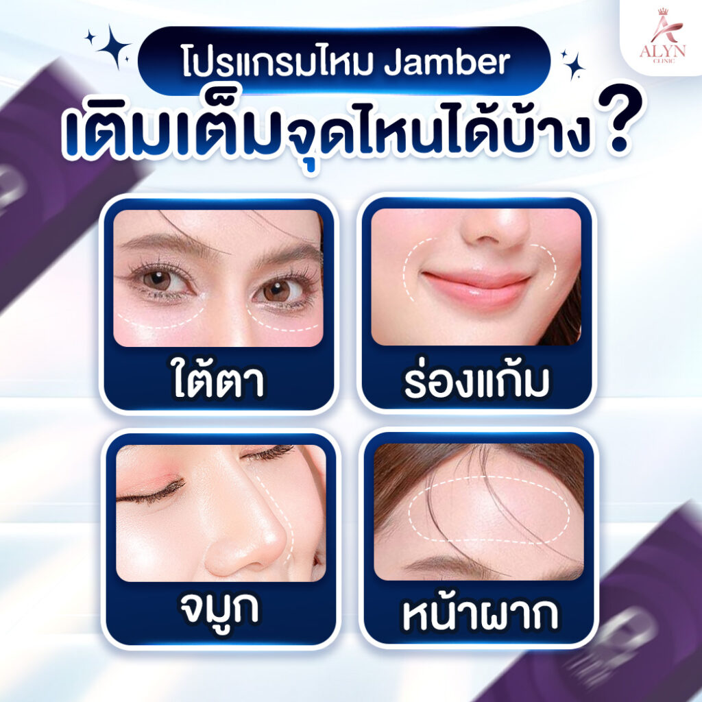 ไหม Jamber ไม่ได้มีแค่คุณสมบัติยกกระชับ แต่ยังสามารถ เติมเต็มวอลลุ่มในจุดต่างๆ บนใบหน้า ได้อย่างหลากหลาย เป็นอีกหนึ่งสำหรับผู้ที่มองหาทางเลือกแทนการฉีดฟิลเลอร์